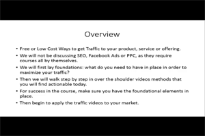 Over 18 Hours Of Tutorials Covering All Aspects Of Traffic Generation! Simply Login, Watch, Learn & Apply!